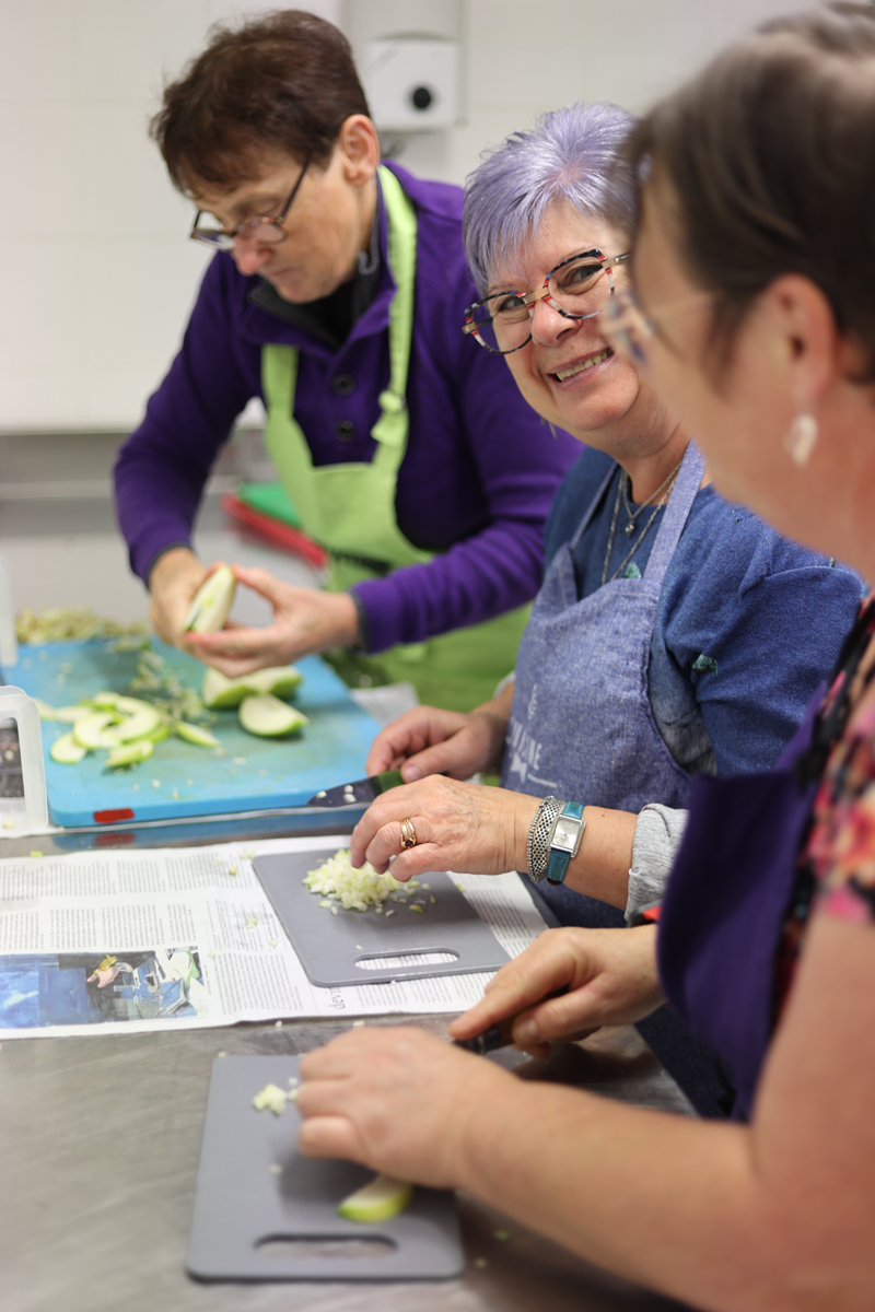 Le dispositif a été déployé lors de la préparation d’un repas pour cent personnes, avec une équipe de bénévoles aux profils intergénérationnels et interculturels : demandeurs d’asile, jeunes en institut thérapeutique et retraité·es.