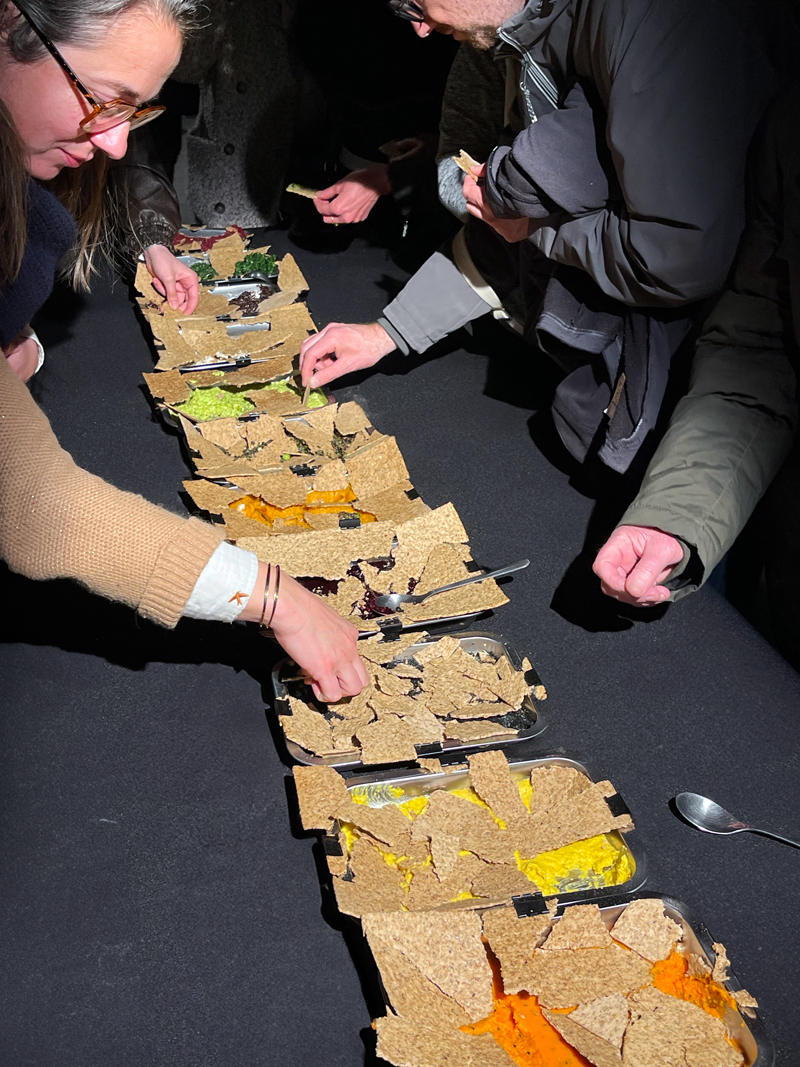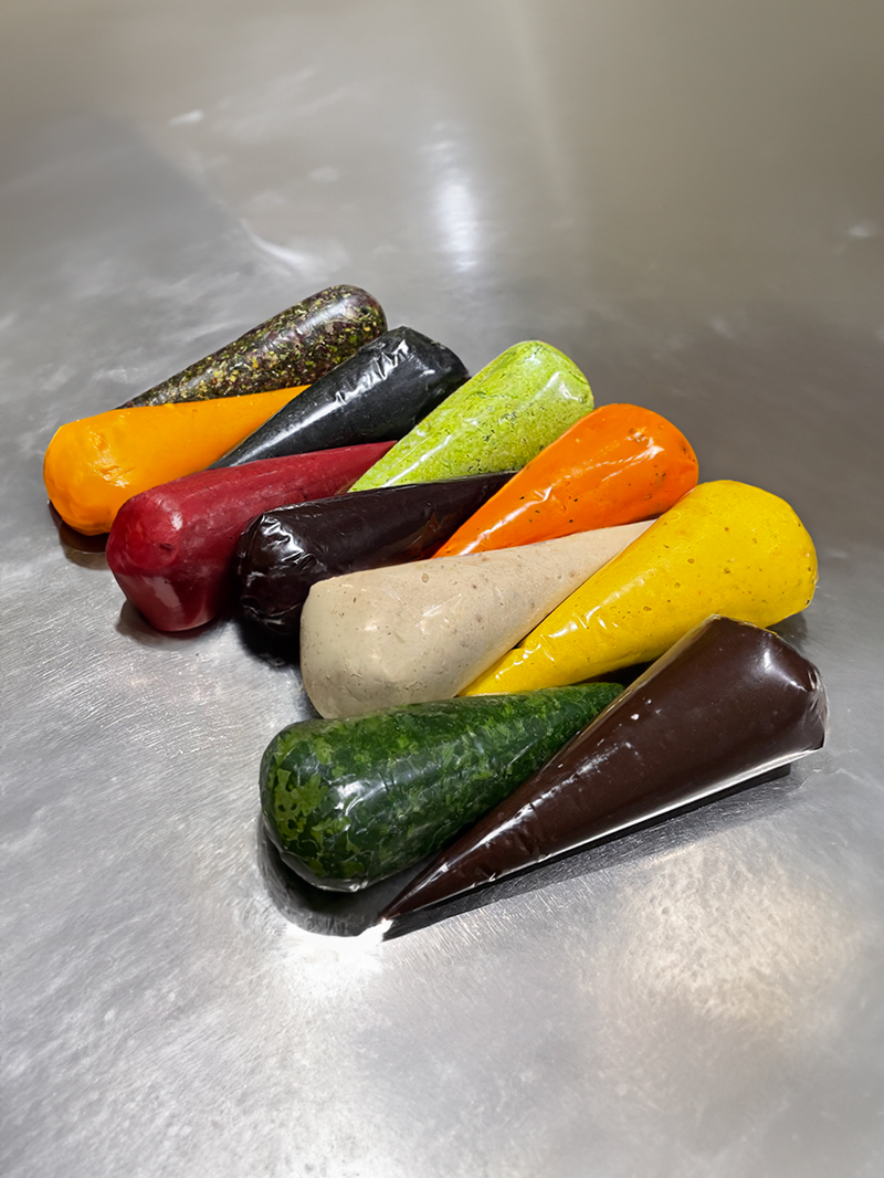 Onze tartinables — 9 salés et 2 sucrés — aux couleurs franches composent l’ensemble. Chaque ouverture révèle une préparation dont les saveurs restent à identifier.