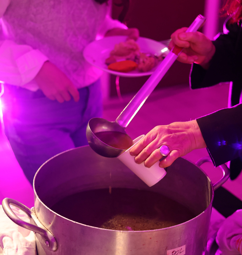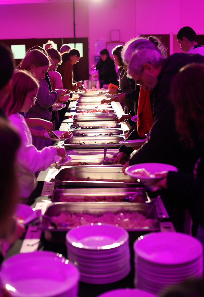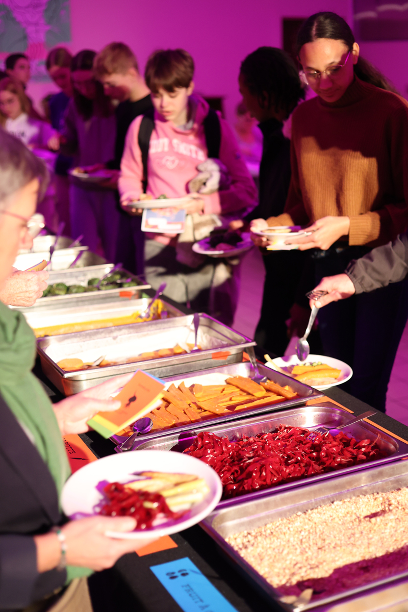 Le dispositif a été déployé lors de la préparation d’un repas pour cent personnes, avec une équipe de bénévoles aux profils intergénérationnels et interculturels : demandeurs d’asile, jeunes en institut thérapeutique et retraité·es.