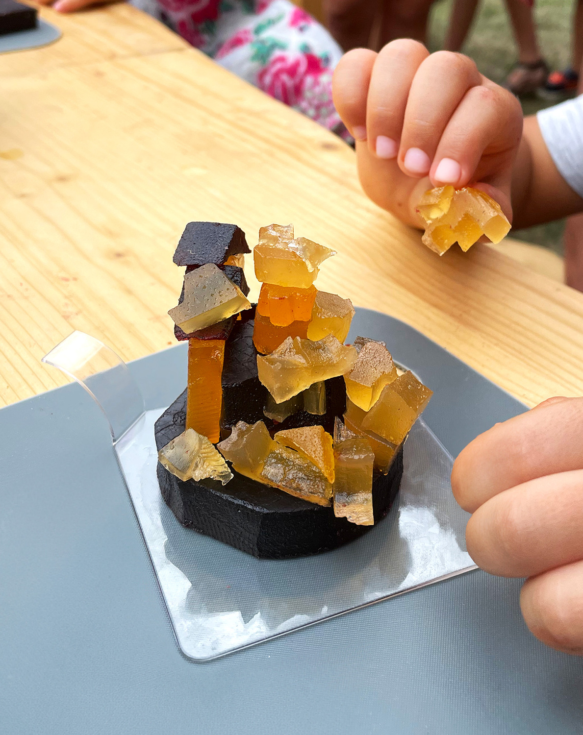 Atelier consacré à la découverte de la pâte de fruits d’Auvergne et à la micro-architecture, proposé au centre d’art et d’éveil mille formes pour les enfants de 2 à 6 ans.